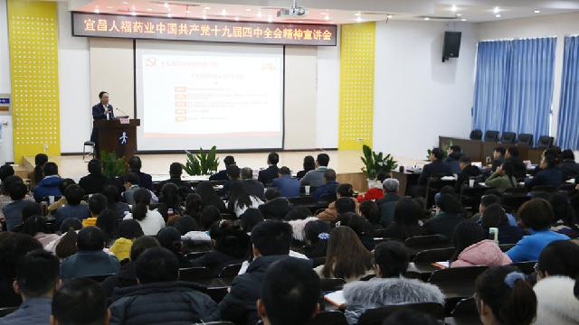 12月24日上午,宜昌人福藥業(yè)公司黨委舉辦“黨的十九屆四中全會精神宣講會”活動。公司黨委書記、董事長李杰,黨委副書記、副總裁晏濤,黨委委員、總裁助理、工會主席蔡莉君,副總裁楊家柱、鐘麗君,總裁助理符義